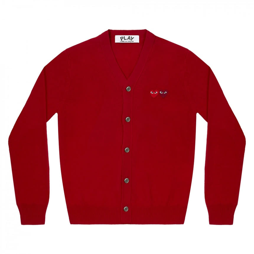 더블 하트 V넥 가디건 - Red