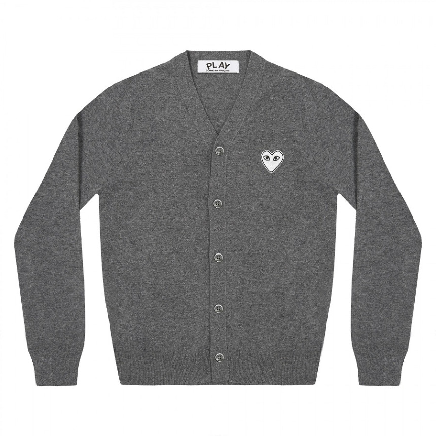 화이트 하트 V넥 가디건 - Grey